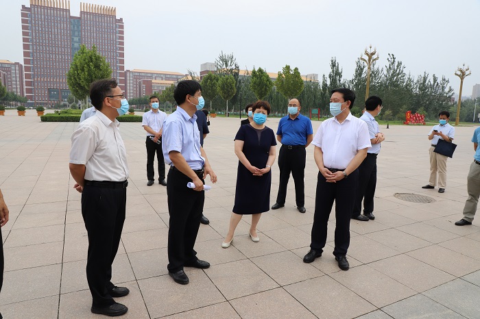 2020年8月26日上午,市委副书记宋仁堂、副市长梁英华一行莅临我校调研检查秋季开学准备工作。学校党委书记陈进杰、校长向辉、副校长于振海陪同调研检查。 检查组分别在学校南门、教学楼、食堂等场所对学生进校通道、...
