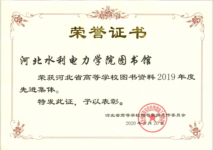 近日,河北省高等学校图书情报工作委员会发布《关于表彰 2019年度河北省高等学校图书资料先进工作者、先进集体的通知》,我校图书馆荣获2019年度“河北省高等学校图书资料先进集体”称号。图书馆主雪梅老师荣获2019年...
