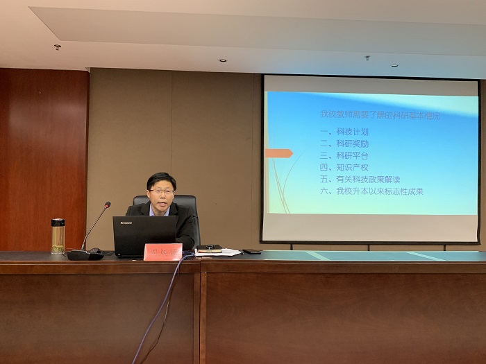 11月12日下午,在弘文守正楼9楼报告厅,我校2020年度新入职教师培训第三讲开讲,科技处副处长周炳臣受邀作了题为《坚持创新 服务社会 努力提高科学研究能力》的精彩报告。 本次报告从科技计划入题,详细讲述了国家级...