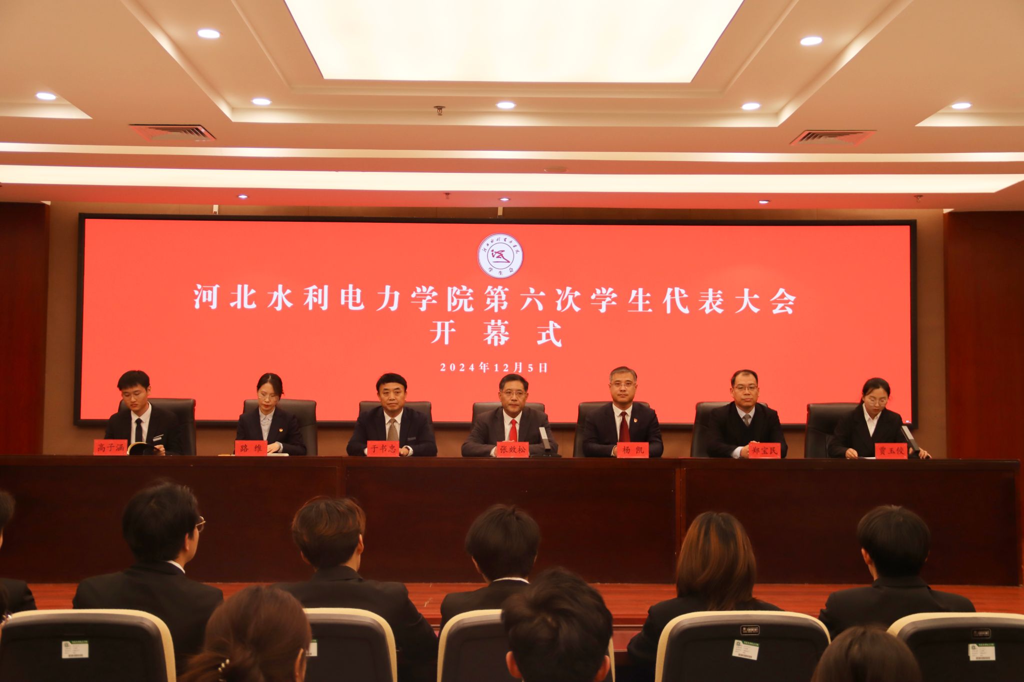 12月5日,我校在弘文守正楼9楼报告厅召开第六次学生代表大会,党委书记张效松、副校长杨凯出席大会开幕式,党委宣传部长、统战部长于书忠,党委学生工作部长、学生处长郑宝民,校团委书记路维以及全校109名大学生代表参加本次大会。张效松在讲话中充分肯定了我校各级学生会组织深入学习贯彻习近平新时代中国特色社会主义思想,以全心全意服务同学为宗旨,积极履职尽责,主动担当作为,在思想政治引领、丰富校园文化、促进学风建设、推进从严治会、...