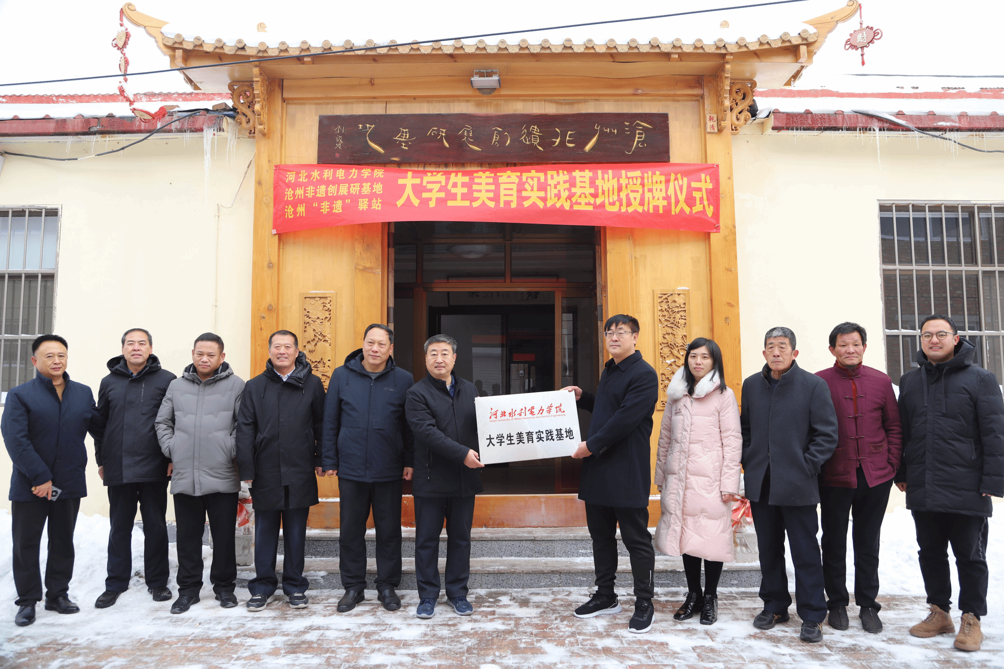 为全面贯彻习近平总书记关于学校美育工作的重要指示精神,进一步落实非物质文化遗产保护工作,传承弘扬非物质文化遗产。12月15日,电气自动化系党总支书记葛洪伟、团委书记张宁和辅导员刘福志、王静静一行前往沧州非遗创展研基地并举行挂牌仪式。沧州市文联副主席王春周、基地馆长卢加河、中国工艺美术大师李家震等参加揭牌仪式。电气自动化系党总支书记葛洪伟和沧州市文联副主席王春周等人共同为美育基地举行挂牌仪式。仪式上,基地馆长卢加河向校方代表表示欢迎,...