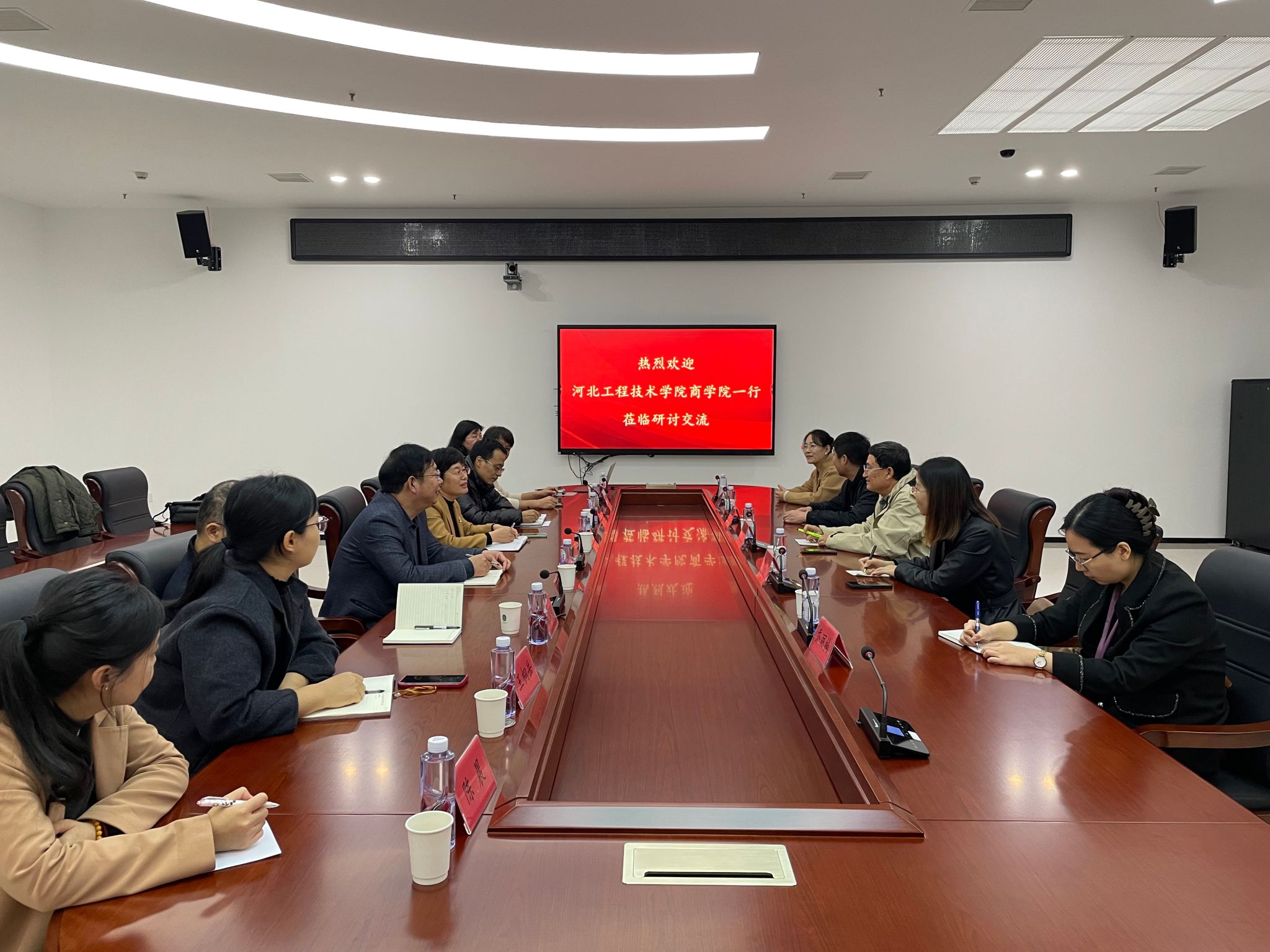 为进一步加深院校之间的交流合作,11月14日河北工程技术学院商学院院长王明吉一行5人来我校经济贸易系开展交流调研活动。经济贸易系领导班子及相关专业负责人等参加交流会。经济贸易系主任张桂芳对河北工程技术学院商学院老师的到来表示热烈欢迎。她对经济贸易系的发展历程、人才培养思路举措及专业建设成果等方面教学工作情况进行了详细介绍。王明吉对经济贸易系教学改革、师资培养及教学管理规范性等方面表示赞许,同时也对商学院的师资力量、...