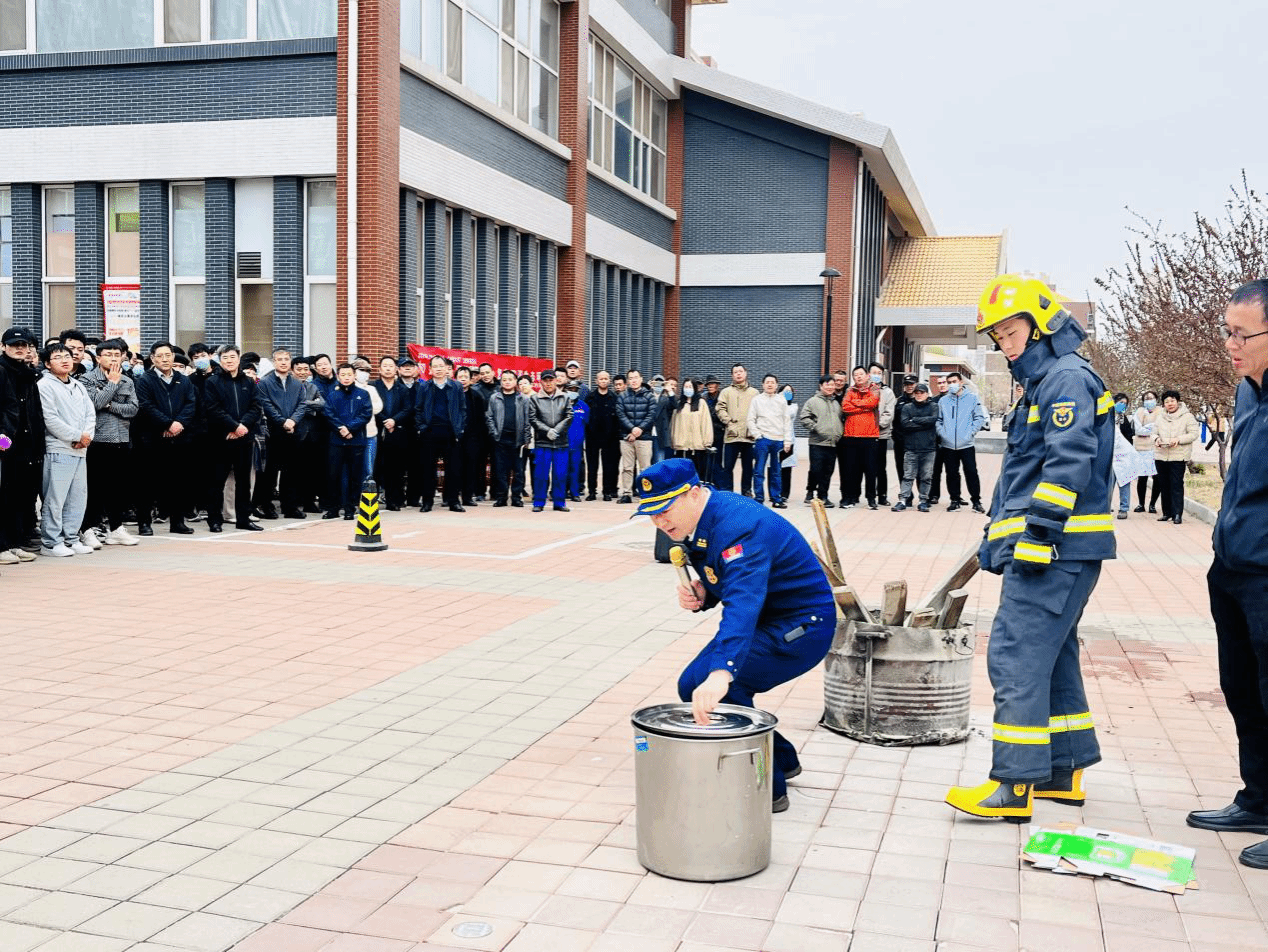 为完善学校火灾扑救和组织人员疏散逃生工作预案,帮助我校各级消防安全责任人、管理人员掌握开展灭火和疏散演练的程序方法,提高师生员工使用校内消防设施器材的能力,熟悉疏散逃生路线,掌握疏散逃生技能,增强师生员工消防安全意识。4月1日下午,在沧州市消防救援支队赵江奎高级工程师和8名消防员现场指导下,我校开展了火灾疏散逃生和灭火演练活动。学校党委书记张效松,党委副书记、校长王滨,副校长崔立功,纪委书记方敏,副校长杨凯到场指导,学校400余名师生员工参加了本次演练。