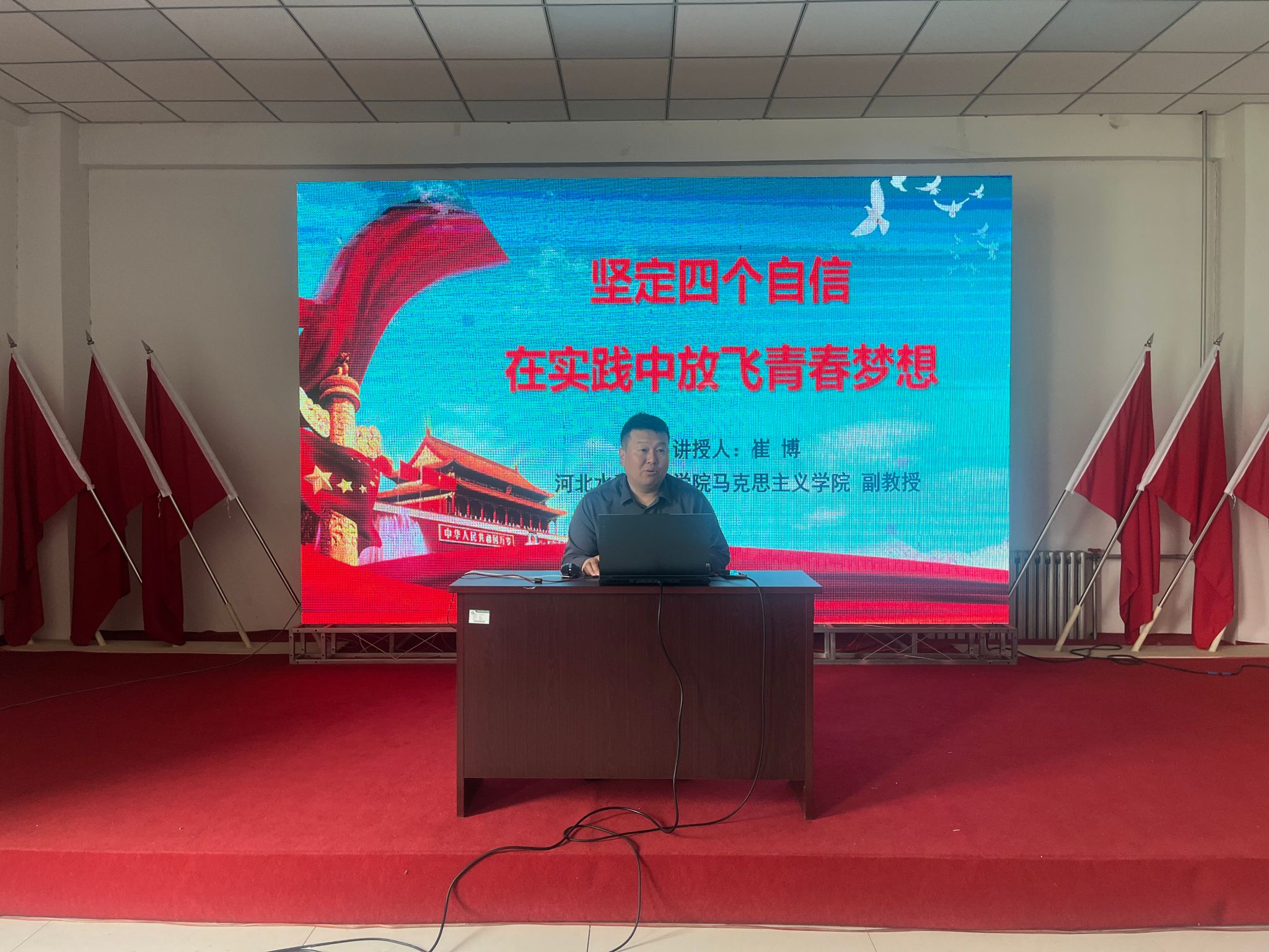 在后续培训中,马克思主义学院副教授崔博做了题为《坚定四个自信 在实践中放飞青春梦想》专题讲座;原思政部主任胡文丽做了题为《品读伟人诗词 强化责任担当》专题讲座;两名2024年省青马班学员进行了学习心得分享;学员们还进行了分组研讨和素质拓展训练。
