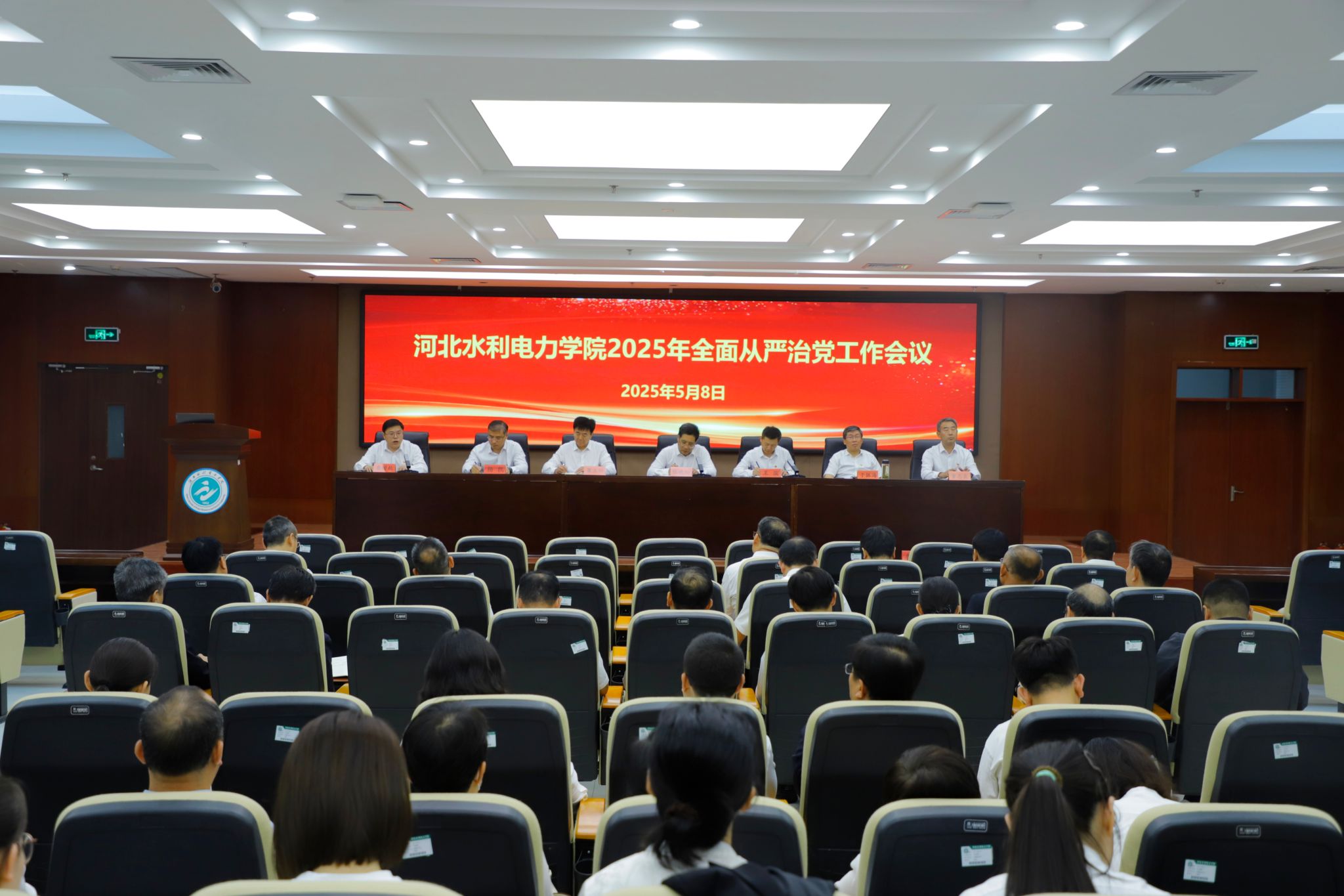 5月8日,我校召开2025年全面从严治党工作会议。会议深入学习贯彻习近平总书记在二十届中央纪委四次全会上的重要讲话精神和党中央关于全面从严治党的战略部署,贯彻落实省纪委十届五次全会和2025年度全省教育系统全面从严治党工作会议精神,总结回顾2024年学校全面从严治党工作,部署2025年重点任务。校党委书记张效松出席会议并讲话,党委副书记、校长王滨主持会议,纪委书记、监察专员鲁增秋安排部署纪检监察工作。全体校领导、党委委员、纪委委员、各二级党委委员及离退休党总支委员、党支部书记、纪检委员、处级干部参加会议。