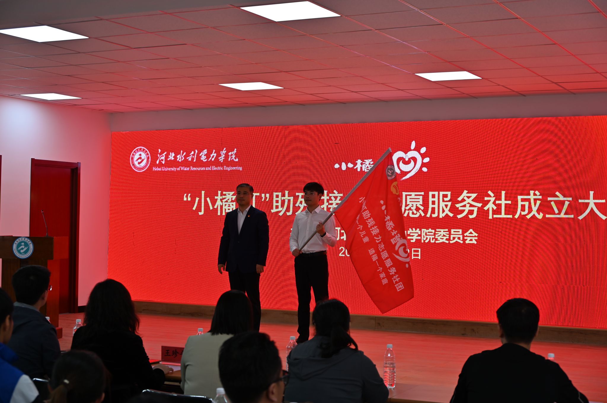 会上,社团指导老师杨阔首先介绍了社团的筹建背景、服务宗旨及未来规划。杨凯为社团授旗并致辞,他勉励青年学子要大力弘扬志愿精神,在服务中锤炼品格、践行担当。沧州市委社会工作部副部长刘盛飞、市残联组联维权部主任郭乾、团市委志工部部长赵洋分别致辞,对社团成立表示祝贺,并期待校地协同深化助残服务,为特殊群体办实事、解难题。