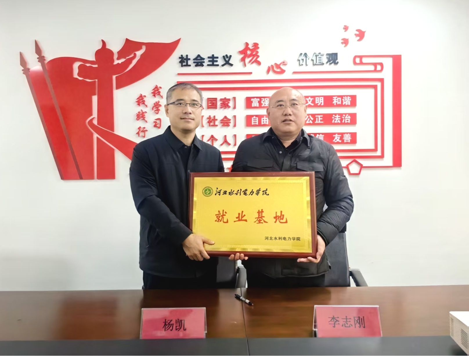 在科畅电气有限公司、保定市水木电器设备有限公司、保定和易法电气科技有限公司等企业,杨凯深入了解企业在智能电网、新能源等领域的技术创新与应用前景,就校企共建实训平台、联合开展技术研发等提出合作构想,围绕联合人才培养模式与企业开展研讨,并达成初步合作意向,为推动产教深度融合、实现校企协同育人奠定坚实基础。随后,学校分别与科畅电气有限公司、保定市水木电器设备有限公司签订了就业基地协议书,并举行了就业基地授牌仪式。