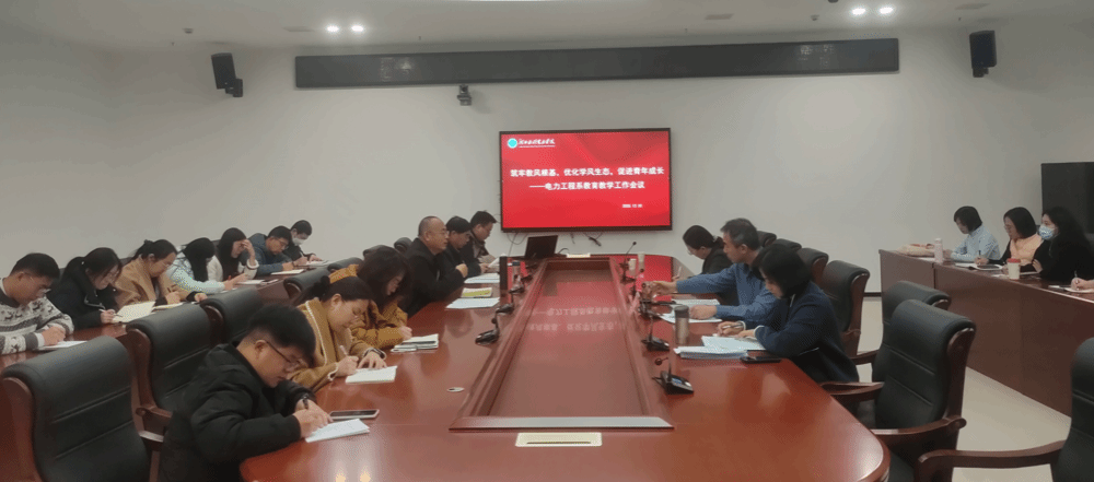 12月2日下午,电力工程系在弘文守正楼九楼第三会议室召开教育教学工作会议。会议以“筑牢教风根基,优化学风生态,促进青年成长”为主题。副校长董志良出席会议,教务处处长贾冬青、高教研究中心主任徐艳,电力工程系领导班子及全体教职工参会。会议由系主任李文才主持。